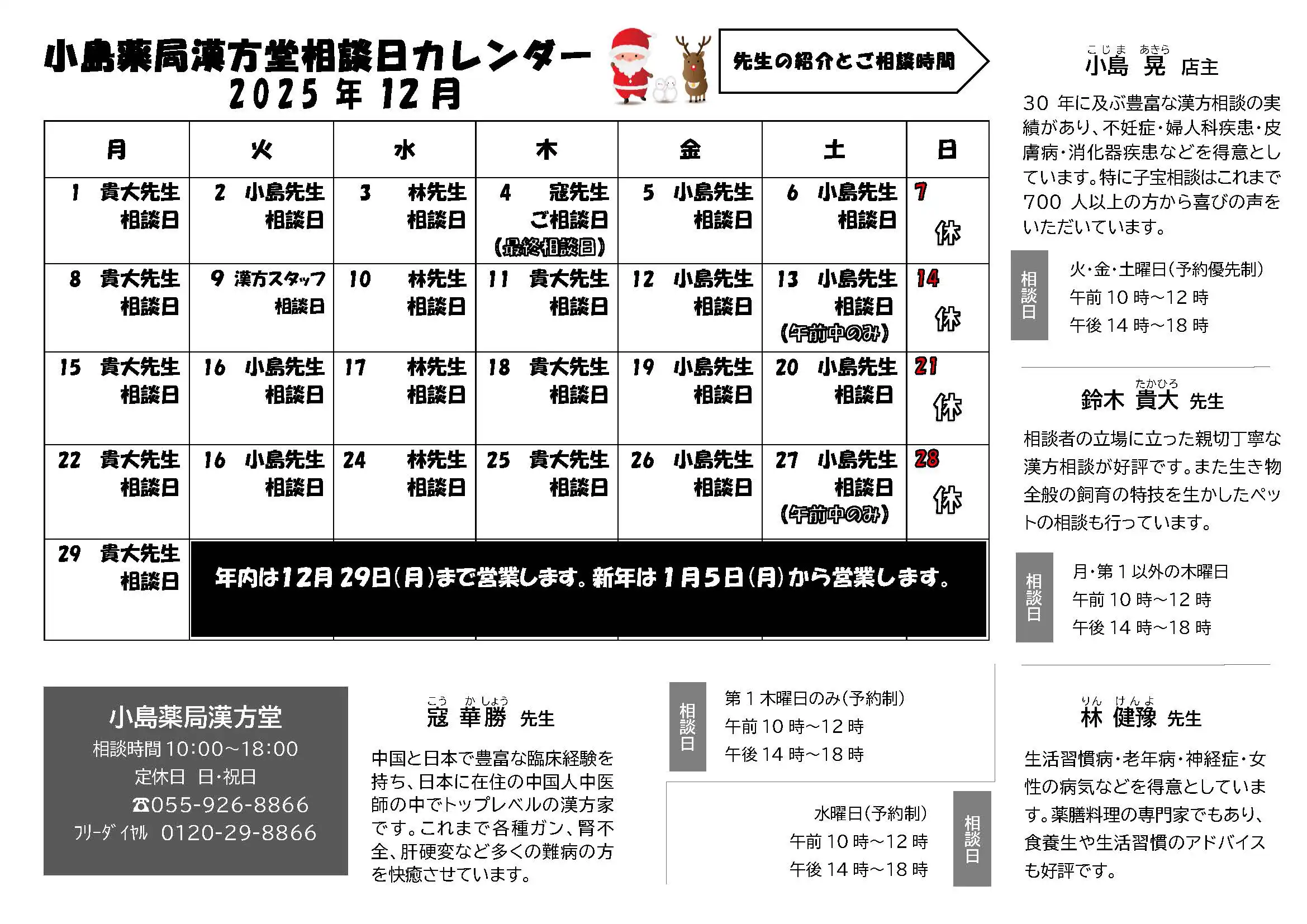 予約制にて漢方相談を受け付けております。まずはお電話ください。